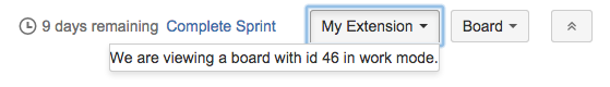 This tutorial shows you how to add a new dropdown to a board in Jira Software, by using a Jira Software module in your Connect app. This dropdown will appear in the top right corner of an Agile board, next to the Board dropdown.