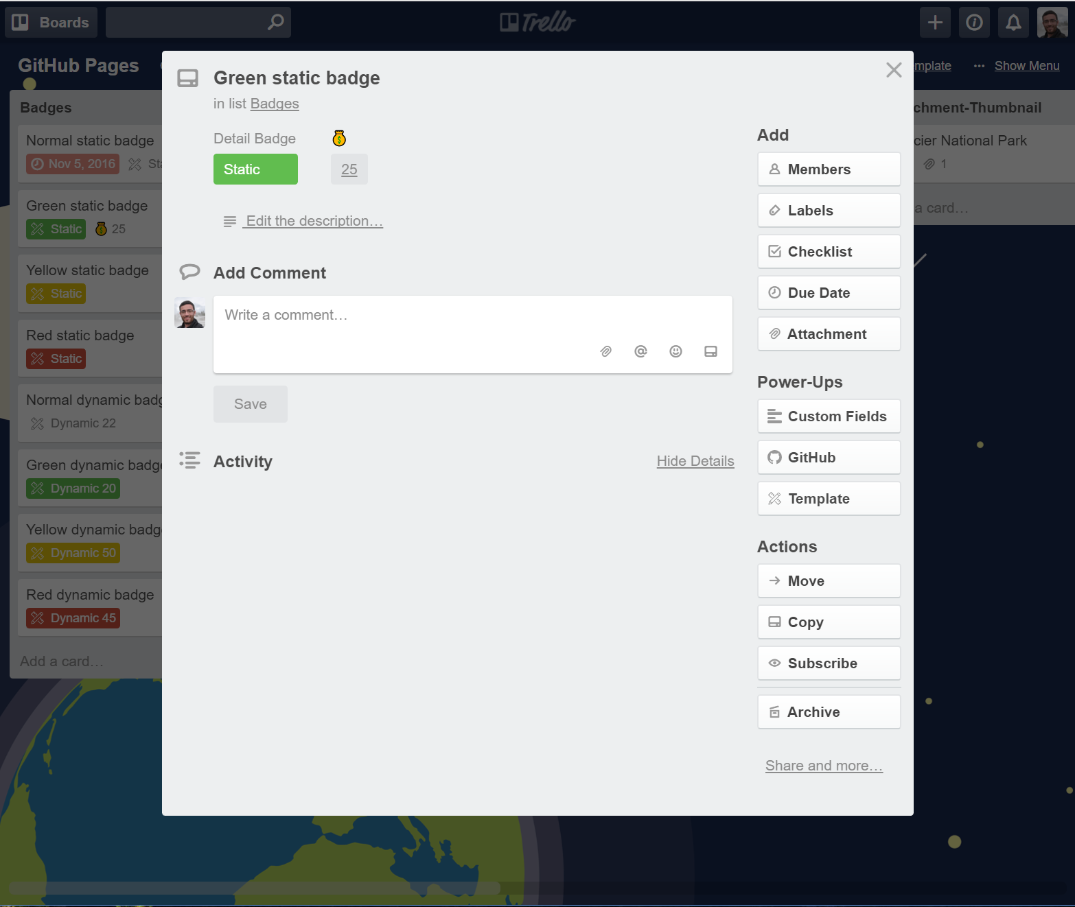 Sometimes you may want to allow users to take actions directly on and related to a specific card. In those cases you would use the card-buttons capability to add the buttons you need to the card. All buttons that come from Power-Ups land in the Power-Ups section.