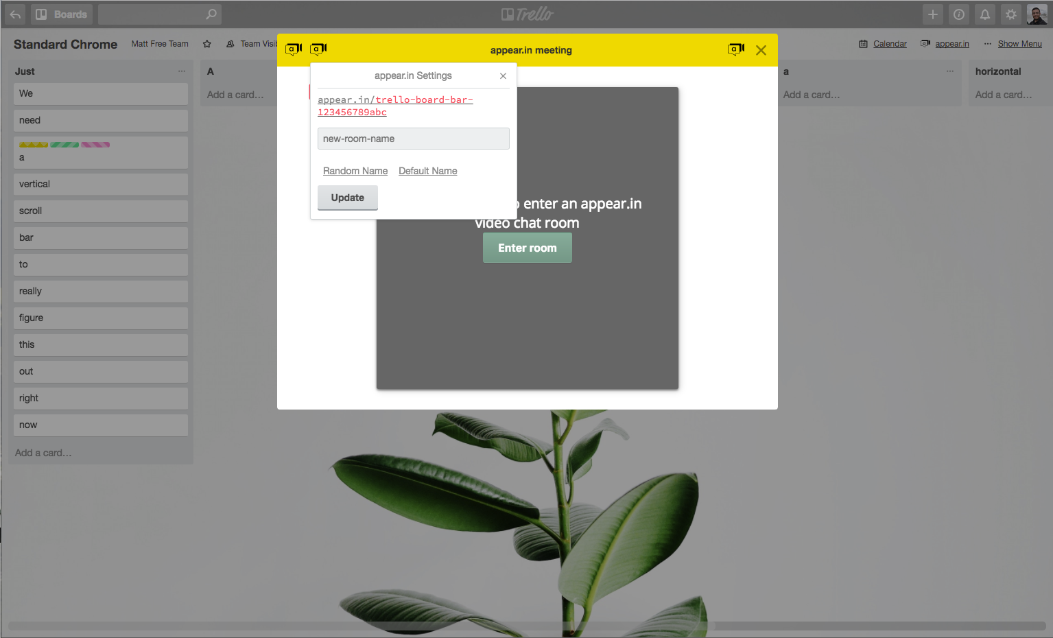 In certain cases, your Power-Up might need to show UI that requires taking up a large portion of the screen. When you need something more than t.popup(opts) or t.boardBar(opts) can provide, you can use t.modal. This lets you display an iframe directly on top of Trello. The modal comes in two widths, fullscreen: true as seen below: