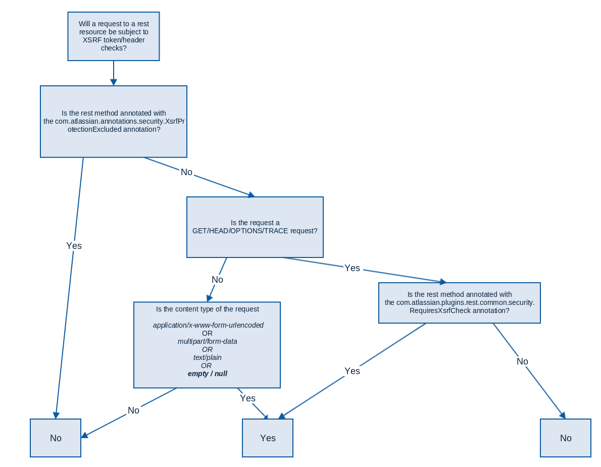 The following diagram shows when XSRF protection is enforced on a request to a rest resource in atlassian-rest 3.0.0 and later versions.