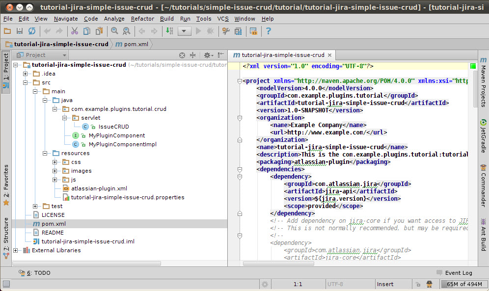 Setting up IDEA for plugin development is a breeze. Simply create a plugin project using the atlas-create-*-plugin command (for example, atlas-create-confluence-plugin) and then load the project's POM file into IntelliJ. IntelliJ's Maven integration will generate the appropriate project files for you.