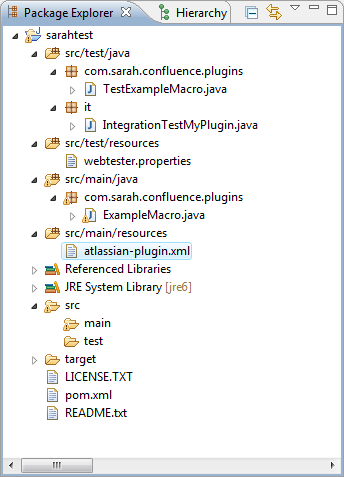 When you create your plugin skeleton, Maven will download (a lot of) dependencies from the Internet, set up a project skeleton, and prepare you to run unit and functional tests. It creates a new directory structure that looks something like this (screenshot taken from Eclipse IDE):
