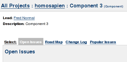 All these tab panels ('Open Issues', 'Road Map', 'Change Log' and 'Popular Issues') are implemented as plugins. New component tab panels can be implemented to display component-specific info.