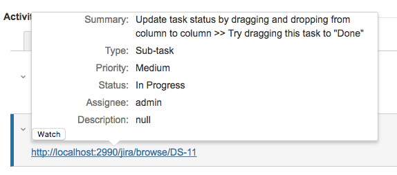 The pop-up should contain a "quick view" of information about the target issue (similar to the example shown in the following image) so that you do not have to click the issue's link to see this information.