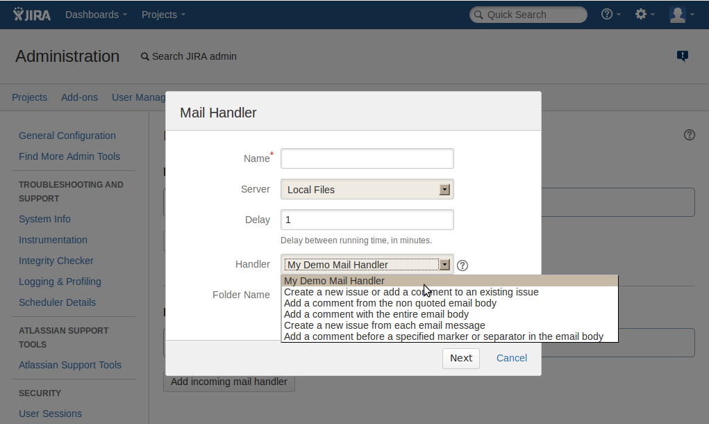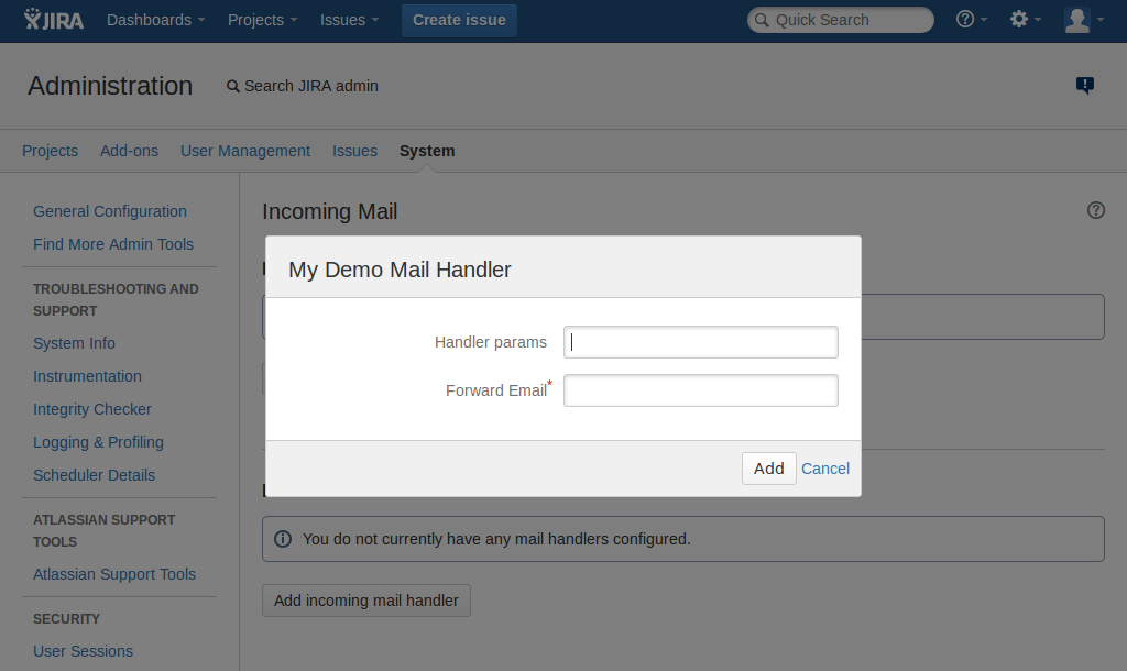 1 2<message-handler i18n-name-key="demohandler.name" key="demoHandler" class="com.example.plugins.tutorial.jira.mailhandlerdemo.DemoHandler" add-edit-url="/secure/admin/EditHandlerDetailsUsingParams!default.jspa" weight="0"/>