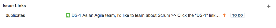 1 2mysql> select j1.pkey, issuelinktype.INWARD, j2.pkey from jiraissue j1, issuelink, issuelinktype, jiraissue j2 where j1.id=issuelink.SOURCE and j2.id=issuelink.DESTINATION and issuelinktype.id=issuelink.linktype; +-------+---------------------+-------+ | pkey | INWARD | pkey | +-------+---------------------+-------+ | TP-4 | jira_subtask_inward | TP-5 | | TP-4 | jira_subtask_inward | TP-7 | | TP-4 | jira_subtask_inward | TP-8 | | TP-11 | jira_subtask_inward | TP-12 | | TP-4 | jira_subtask_inward | TP-6 | | TP-1 | is duplicated by | TP-2 | +-------+---------------------+-------+ 6 rows in set (0.00 sec)