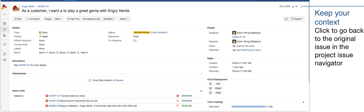 SuggestionJIRA 7.1 EAPThe new "project issue view" for JIRA Core gives you an expanded view of any issue from within a project. Just click the  icon or an issue link in an issue...