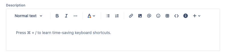 1 2string // Plain-text editor | type ADF = { version: 1, type: 'doc', content: Node[] } // Rich-text editor (ADF format) // https://developer.atlassian.com/cloud/jira/platform/apis/document/structure/