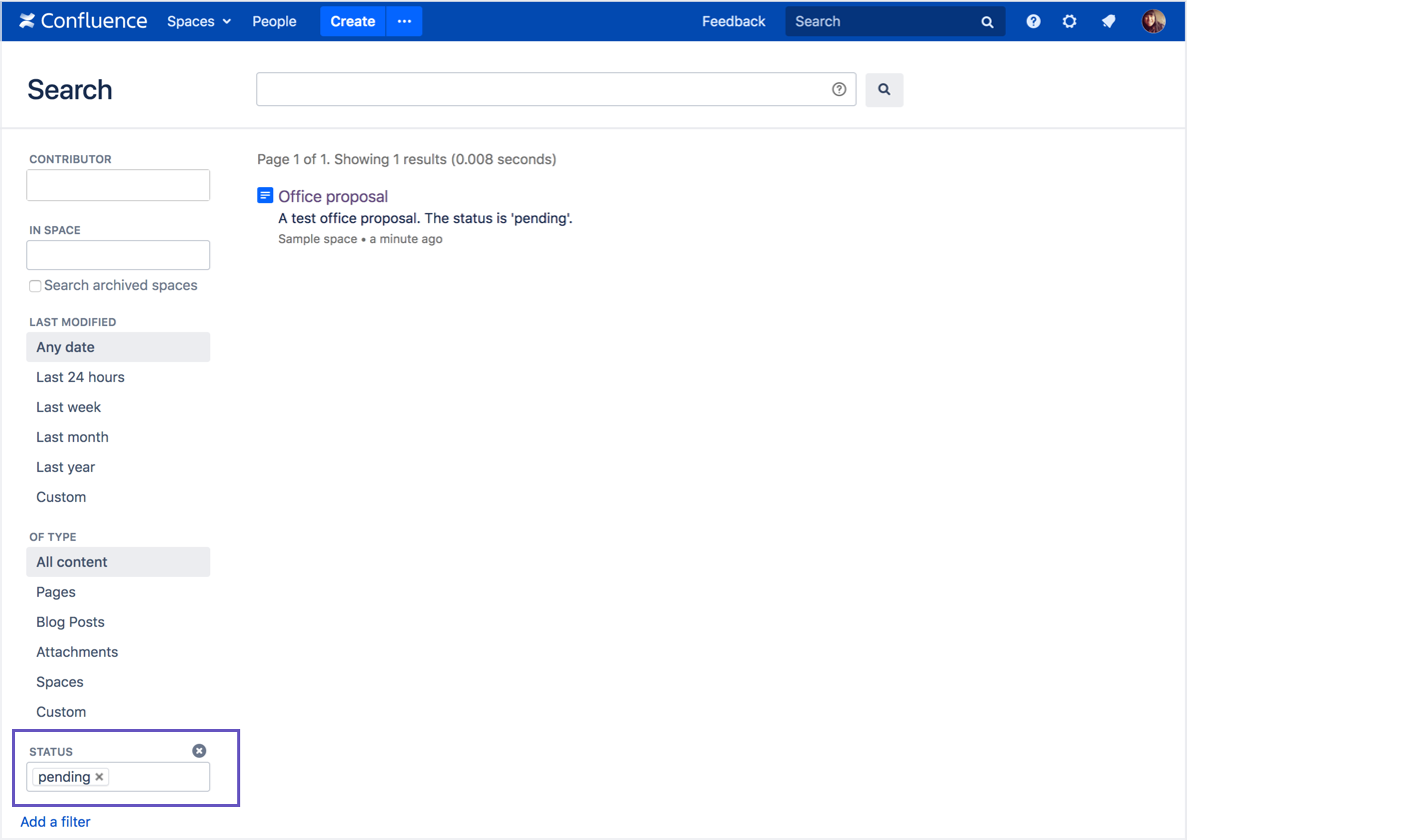 After completion you should be able to execute a CQL query containing the newly created field via the REST API and filter the contents using the field in the Confluence advanced search UI.