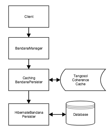 As you can see from the diagram, the CachingBandanaPersister is solely responsible for reading and updating the cache, only delegating queries to the HibernateBandanaPersister when the required data is not already in the case.