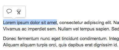 The highlight actions panel in Confluence is the panel that appears when text is selected. It contains buttons with additional actions the user can perform. By default, the user can: