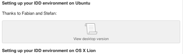 In the above example you should pay special notice the call context.getOutputDeviceType(). This method was introduced on the ConversionContext in Confluence 4.3.2. If you are working on an existing macro you will probably prefer not to require a new branch for the mobile compatible macro.