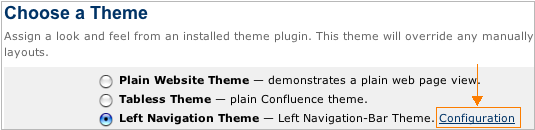 The themes can be configured via the Configuration link on the Choose Theme page on both the space and global level.