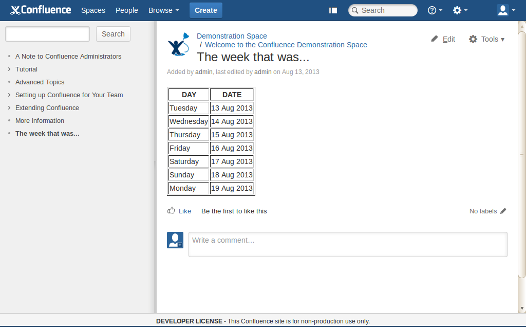 This tutorial was last tested with Confluence 5.1.4.