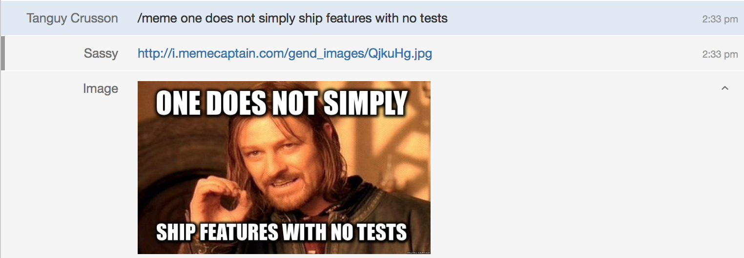 Slash commands, which is a way for power users to use HipChat as a command centre: