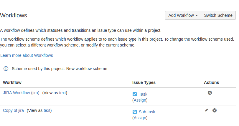 In the left menu, click the Workflow Schemes > Add Workflow Scheme.