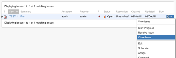 Test out your new code. Reload the app and this form should now work from not only the View Issue page, but also any of the cog menus (Dashboard, Issue Navigator, and the sub-task list). The image below shows the Schedule option in the Issue Navigator: