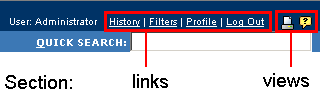 You can add new web items to existing web sections in the user name drop-down menu (see below), or add new sections to this menu along with new items.